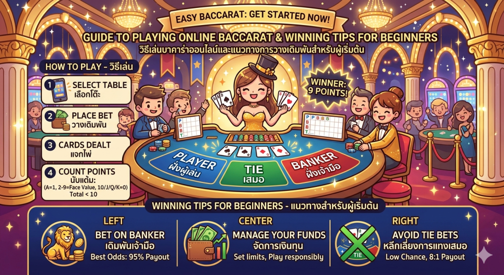 วิธีเล่นบาคาร่าออนไลน์ให้เข้าใจง่าย พร้อมแนวทางการวางเดิมพันสำหรับผู้เริ่มต้น